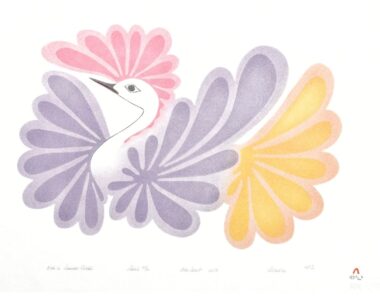 Aoudla Pudlat Works Available 10. Startled Goose, 1988, stonecut 25 x 19.5 in., SOLD 8. Birds Of The Ice Floe, 1981, lithograph 17.5 x 23 in., SOLD Young Birds At Play, 1988, stonecut and stencil, 30 x 22.5 in., List: $400 SALE: $200 – SOLD Resplendent Bird, 1988, stonecut and stencil, 24 x 18 in., List: $ 350 SALE: $175 – SOLD 1. Colourful Bird and Fish, 1981, lithograph, 29 x 22 in., SOLD Mating Battle, 1981, lithograph, 22 x 28 in., List: $400 SALE: $200 – SOLD Imaginary Bird, 1981, stonecut and stencil, 18.5 x 23 in., List: $300 SALE: $150 – SOLD Bird in Autumn Clouds, 1984, stonecut and stencil, 30/50 30 x 22.5 in., List: $350 SALE: $175 – SOLD Dancing Bird, 1981, Lithograph, 22 x 28 in., List: $400 SALE: $200 – SOLD Bird in Summer Clouds, 1984, Stencil, 22.5 x 30in., List: $400 SALE: $200 – SOLD Gallery Exhibitions January 15 to January 22 Winter Sale 2 January 22 to January 29 Winter Print Sale 3 August 22 to September 5 Summer Sale: 20 Bird Prints August 8 to August 22 Summer Sale: 20 Prints