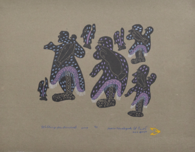 Jessie Kanalogak Works Available 4. Walking For Survival, 2009, stonecut and stencil, 25 x 18.5 in., List: $400 SALE: $200 Gallery Exhibitions January 22 to January 29 Winter Print Sale 3
