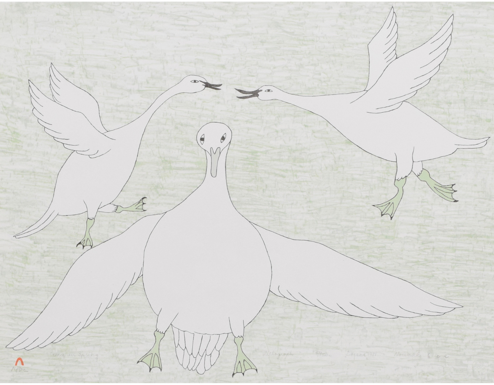 Haunak Mikkigak Works Available 3. Geese In The Spring, 1981, Lithograph, 20 x 26 in., List: $250 SALE: $125 Owl Attacking Prey, 1981,stonecut and stencil, 29/50 25 x 34 in., $250 Gallery Exhibitions January 15 to January 22 Winter Sale 2 April 23 to May 16 Inuit Pop