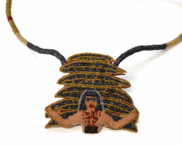 Young K’iid K’iyass, 2024, beaded medallion, Avis Simeon Avis Simeon Young K’iid K’iyass 2024, beaded medallion Inquire Name(Required) Email(Required)